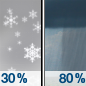 Temperature: 26°F Wind Speed: 14 mph Wind Direction: W Forecast: A chance of snow showers. Mostly cloudy, with a high near 26. Chance of precipitation is 40%. |