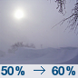 Temperature: 7°F Wind Speed: 10 to 16 mph Wind Direction: NW Forecast: A chance of snow. Mostly cloudy, with a low around 7. Northwest wind 10 to 16 mph, with gusts as high as 25 mph. Chance of precipitation is 50%. New snow accumulation of less than one inch possible. |