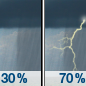 Temperature: 71°F Wind Speed: 10 to 17 mph Wind Direction: SSW Forecast: Rain showers likely before 3pm, then showers and thunderstorms likely. Cloudy, with a high near 71. South southwest wind 10 to 17 mph, with gusts as high as 26 mph. Chance of precipitation is 70%. |