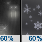 Temperature: 40°F Wind Speed: 2 to 9 mph Wind Direction: NW Forecast: Rain likely before 1am. Mostly cloudy, with a low around 40. Chance of precipitation is 60%. New rainfall amounts less than a tenth of an inch possible. |