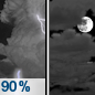 Temperature: 36°F Wind Speed: 15 to 18 mph Wind Direction: NW Forecast: Showers and thunderstorms before 10pm. Mostly cloudy. Low around 36, with temperatures rising to around 39 overnight. Northwest wind 15 to 18 mph, with gusts as high as 31 mph. Chance of precipitation is 90%. New rainfall amounts between a quarter and half of an inch possible. |