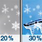 Temperature: 17°F Wind Speed: 7 to 10 mph Wind Direction: W Forecast: Snow showers likely. Mostly cloudy, with a low around 17. Chance of precipitation is 70%. |
