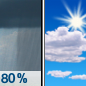 Temperature: 45°F Wind Speed: 9 to 15 mph Wind Direction: SW Forecast: Rain showers likely before 1pm, then a chance of snow showers. Mostly cloudy, with a high near 45. |