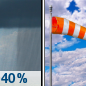 Temperature: 65°F Wind Speed: 20 to 25 mph Wind Direction: N Forecast: A chance of rain showers before noon. Mostly cloudy. High near 65, with temperatures falling to around 53 in the afternoon. North wind 20 to 25 mph, with gusts as high as 38 mph. Chance of precipitation is 40%. |