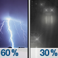 Temperature: 60°F Wind Speed: 6 to 12 mph Wind Direction: SSE Forecast: Rain before 11am, then showers and thunderstorms. Mostly cloudy, with a high near 60. Chance of precipitation is 90%. |