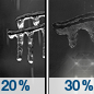 Temperature: 27°F Wind Speed: 7 mph Wind Direction: NE Forecast: A slight chance of rain showers before 7pm, then a chance of freezing rain between 7pm and 1am. Cloudy, with a low around 27. Northeast wind around 7 mph. Chance of precipitation is 30%. New rainfall amounts between a quarter and half of an inch possible. |