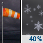 Temperature: 17°F Wind Speed: 10 mph Wind Direction: NW Forecast: A chance of snow. Mostly cloudy, with a low around 17. |