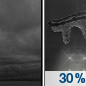 Temperature: 12°F Wind Speed: 20 mph Wind Direction: W Forecast: A chance of snow showers. Mostly cloudy, with a low around 12. |