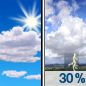 Temperature: 86°F Wind Speed: 6 to 12 mph Wind Direction: W Forecast: A slight chance of showers and thunderstorms between 1pm and 2pm, then a chance of showers and thunderstorms between 2pm and 3pm. Mostly sunny. High near 86, with temperatures falling to around 79 in the afternoon. West wind 6 to 12 mph, with gusts as high as 20 mph. Chance of precipitation is 30%. New rainfall amounts less than a tenth of an inch possible. |