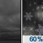 Temperature: 38°F Wind Speed: 12 mph Wind Direction: N Forecast: A chance of snow. Mostly cloudy, with a high near 38. Chance of precipitation is 40%. |