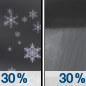 Temperature: 41°F Wind Speed: 2 to 6 mph Wind Direction: S Forecast: A chance of snow showers. Mostly cloudy, with a high near 41. Chance of precipitation is 40%. |