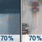 Temperature: 47°F Wind Speed: 2 to 7 mph Wind Direction: E Forecast: Rain showers likely. Cloudy, with a low around 47. East wind 2 to 7 mph. Chance of precipitation is 70%. New rainfall amounts between a quarter and half of an inch possible. |