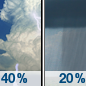Temperature: 19°F Wind Speed: 8 to 12 mph Wind Direction: NW Forecast: A chance of snow before 7pm. Mostly cloudy, with a low around 19. Chance of precipitation is 50%. |