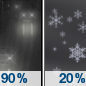 Temperature: 30°F Wind Speed: 10 mph Wind Direction: W Forecast: A chance of rain before 1am, then a chance of snow. Mostly cloudy, with a low around 30. |
