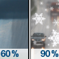 Temperature: 27°F Wind Speed: 10 mph Wind Direction: SW Forecast: A slight chance of rain and snow showers after midnight. Mostly cloudy, with a low around 27. Chance of precipitation is 20%. |