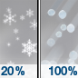 Temperature: 26°F Wind Speed: 2 to 6 mph Wind Direction: E Forecast: A chance of snow between 9am and 4pm, then snow and sleet. Cloudy, with a high near 26. East wind 2 to 6 mph, with gusts as high as 21 mph. Chance of precipitation is 100%. New snow accumulation of less than one inch possible. |