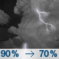Temperature: 46°F Wind Speed: 8 to 12 mph Wind Direction: S Forecast: Showers and thunderstorms likely before 7pm, then rain between 7pm and 10pm, then rain and a slight chance of thunderstorms. Mostly cloudy, with a low around 46. South wind 8 to 12 mph, with gusts as high as 23 mph. Chance of precipitation is 90%. New rainfall amounts between a quarter and half of an inch possible. |