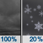 Temperature: 19°F Wind Speed: 0 mph Wind Direction: Forecast: Freezing drizzle before midnight, then patchy fog and a slight chance of freezing drizzle between midnight and 1am, then a slight chance of snow and a slight chance of freezing drizzle between 1am and 2am, then a chance of snow showers between 2am and 4am. Cloudy. Low around 19, with temperatures rising to around 22 overnight. Southeast wind around 0 mph. Chance of precipitation is 100%. Little or no ice accumulation expected. |
