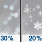 Temperature: 30°F Wind Speed: 3 mph Wind Direction: E Forecast: Patchy drizzle and a slight chance of snow before 7pm. Mostly cloudy, with a low around 30. Chance of precipitation is 20%. |