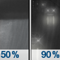 Temperature: 47°F Wind Speed: 13 to 18 mph Wind Direction: S Forecast: Rain showers likely between 8pm and 2am, then rain. Mostly cloudy, with a low around 47. South wind 13 to 18 mph, with gusts as high as 32 mph. Chance of precipitation is 90%. New rainfall amounts between a quarter and half of an inch possible. |