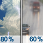 Temperature: 57°F Wind Speed: 7 to 15 mph Wind Direction: NW Forecast: Showers and thunderstorms before 10am, then rain likely. Mostly cloudy, with a high near 57. Chance of precipitation is 80%. New rainfall amounts between a quarter and half of an inch possible. |