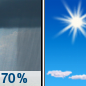 Temperature: 70°F Wind Speed: 3 to 12 mph Wind Direction: S Forecast: A chance of rain showers and patchy fog before 1pm, then a chance of showers and thunderstorms. Partly sunny, with a high near 70. South wind 3 to 12 mph. Chance of precipitation is 50%. New rainfall amounts less than a tenth of an inch possible. |