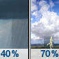 Temperature: 56°F Wind Speed: 7 to 13 mph Wind Direction: SSW Forecast: A chance of rain showers before noon, then showers and thunderstorms likely. Mostly sunny, with a high near 56. |