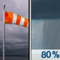 Temperature: 70°F Wind Speed: 13 to 23 mph Wind Direction: SW Forecast: Rain showers after 1pm. Cloudy. High near 70, with temperatures falling to around 62 in the afternoon. Southwest wind 13 to 23 mph, with gusts as high as 39 mph. Chance of precipitation is 80%. |