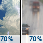 Temperature: 63°F Wind Speed: 3 to 7 mph Wind Direction: E Forecast: Rain showers. Mostly cloudy. High near 63, with temperatures falling to around 55 in the afternoon. East wind 3 to 7 mph. Chance of precipitation is 80%. New rainfall amounts between a tenth and quarter of an inch possible. |
