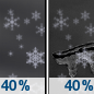 Temperature: 14°F Wind Speed: 8 mph Wind Direction: W Forecast: Snow showers likely. Mostly cloudy, with a low around 14. Chance of precipitation is 70%. |