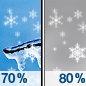 Temperature: 31°F Wind Speed: 8 mph Wind Direction: SW Forecast: Rain and snow before 7pm, then a chance of rain and snow. Mostly cloudy, with a low around 31. Chance of precipitation is 80%. |