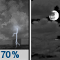 Temperature: 48°F Wind Speed: 9 mph Wind Direction: WSW Forecast: Showers and thunderstorms likely. Mostly cloudy, with a high near 48. West southwest wind around 9 mph. Chance of precipitation is 70%. New rainfall amounts between a tenth and quarter of an inch possible. |