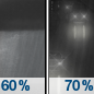 Temperature: 35°F Wind Speed: 5 to 8 mph Wind Direction: SSW Forecast: Rain likely. Mostly cloudy, with a low around 35. |