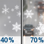 Temperature: 37°F Wind Speed: 3 to 9 mph Wind Direction: NE Forecast: A chance of snow. Mostly cloudy, with a high near 37. Northeast wind 3 to 9 mph. Chance of precipitation is 50%. |