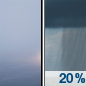 Temperature: 20°F Wind Speed: 12 mph Wind Direction: NW Forecast: A chance of rain showers before midnight. Mostly cloudy, with a low around 20. Chance of precipitation is 30%. |