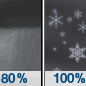 Temperature: 29°F Wind Speed: 14 to 18 mph Wind Direction: SW Forecast: Rain showers before 4am, then a chance of rain and snow showers. Cloudy, with a low around 29. Southwest wind 14 to 18 mph, with gusts as high as 31 mph. Chance of precipitation is 100%. New rainfall amounts between a quarter and half of an inch possible. |