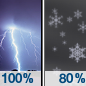 Temperature: 32°F Wind Speed: 1 to 6 mph Wind Direction: SE Forecast: Showers and thunderstorms before 3am, then rain and snow showers. Mostly cloudy, with a low around 32. Southeast wind 1 to 6 mph. Chance of precipitation is 100%. New rainfall amounts between a half and three quarters of an inch possible. |