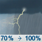 Temperature: 67°F Wind Speed: 10 to 25 mph Wind Direction: SSW Forecast: Rain and a chance of thunderstorms and patchy fog. Cloudy. High near 67, with temperatures falling to around 56 in the afternoon. South southwest wind 10 to 25 mph, with gusts as high as 38 mph. Chance of precipitation is 100%. New rainfall amounts between a quarter and half of an inch possible. |