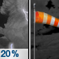 Temperature: 56°F Wind Speed: 15 to 21 mph Wind Direction: S Forecast: Showers and thunderstorms likely. Mostly cloudy, with a low around 56. |