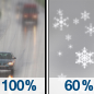 Temperature: 60°F Wind Speed: 5 to 8 mph Wind Direction: S Forecast: Rain likely. Cloudy, with a high near 60. Chance of precipitation is 70%. |