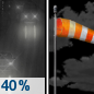 Temperature: 33°F Wind Speed: 5 to 10 mph Wind Direction: NE Forecast: A slight chance of rain before 7pm. Mostly cloudy, with a low around 33. |