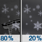 Temperature: 36°F Wind Speed: 5 to 9 mph Wind Direction: NE Forecast: A chance of snow. Mostly cloudy, with a high near 36. Northeast wind 5 to 9 mph. Chance of precipitation is 40%. |