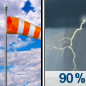 Temperature: 79°F Wind Speed: 15 to 25 mph Wind Direction: S Forecast: Showers and thunderstorms after 1pm. Mostly cloudy. High near 79, with temperatures falling to around 73 in the afternoon. South wind 15 to 25 mph, with gusts as high as 40 mph. Chance of precipitation is 90%. New rainfall amounts between a quarter and half of an inch possible. |