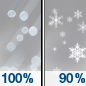 Temperature: 34°F Wind Speed: 2 to 6 mph Wind Direction: E Forecast: Snow likely. Cloudy. High near 34, with temperatures falling to around 32 in the afternoon. Chance of precipitation is 70%. New snow accumulation of 2 to 4 inches possible. |