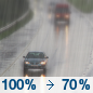 Temperature: 41°F Wind Speed: 7 mph Wind Direction: WNW Forecast: A chance of rain before midnight. Mostly cloudy, with a low around 41. Chance of precipitation is 30%. New rainfall amounts less than a tenth of an inch possible. |