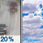 Temperature: 43°F Wind Speed: 6 mph Wind Direction: N Forecast: A chance of rain. Mostly cloudy, with a low around 43. Chance of precipitation is 30%. |