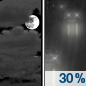 Temperature: 39°F Wind Speed: 3 mph Wind Direction: E Forecast: A chance of rain after 1am. Mostly cloudy, with a low around 39. Chance of precipitation is 30%. |