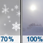 Temperature: 12°F Wind Speed: 7 to 12 mph Wind Direction: W Forecast: Snow. Mostly cloudy, with a low around 12. Chance of precipitation is 100%. New snow accumulation of 3 to 7 inches possible. |