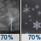 Temperature: 41°F Wind Speed: 18 to 25 mph Wind Direction: W Forecast: Showers and thunderstorms likely before 10pm, then showers and thunderstorms likely between 10pm and 4am, then a chance of rain and snow showers. Partly cloudy, with a low around 41. West wind 18 to 25 mph, with gusts as high as 37 mph. Chance of precipitation is 70%. |