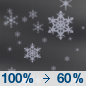 Temperature: 14°F Wind Speed: 2 to 6 mph Wind Direction: E Forecast: Snow before 5am. Cloudy, with a low around 14. East wind 2 to 6 mph. Chance of precipitation is 100%. New snow accumulation of 3 to 7 inches possible. |